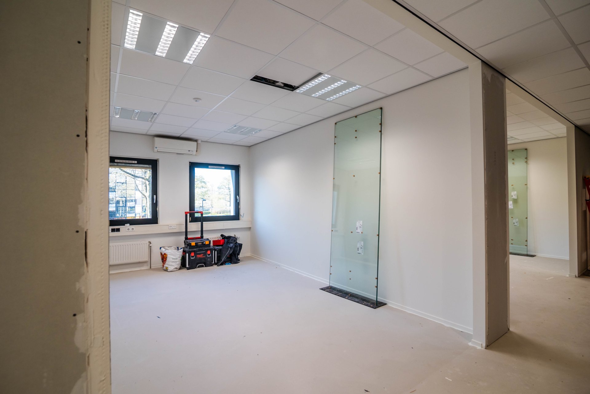 Tijdens het fotograferen waren de plafonds deels nog open vanwege de afrondende installaties. Dat geeft een mooi kijkje in de technische opbouw van het eindresultaat.