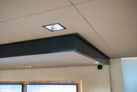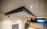 • 460 m² nieuw systeemplafond gemonteerd, ingelegd met Ecophon Focus DS (600x600 mm) in de stijlvolle grijze kleur, Silk Slate.