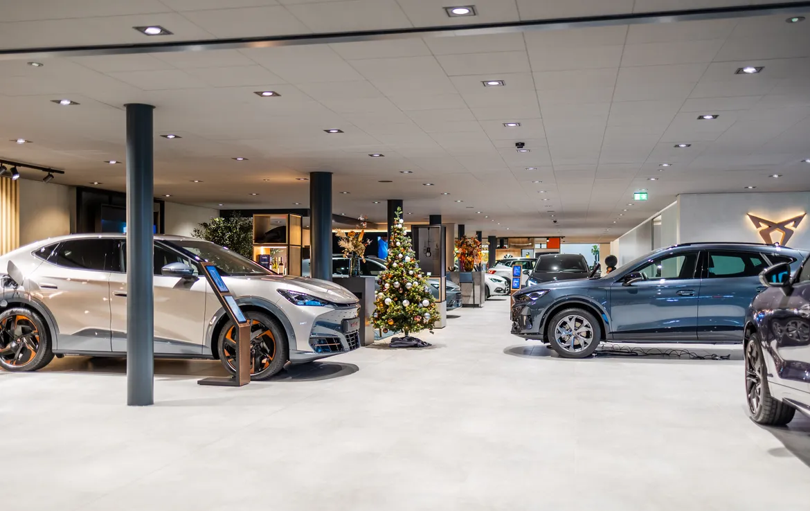 Het resultaat? Een showroom die perfect aansluit bij de moderne en dynamische uitstraling van Cupra!